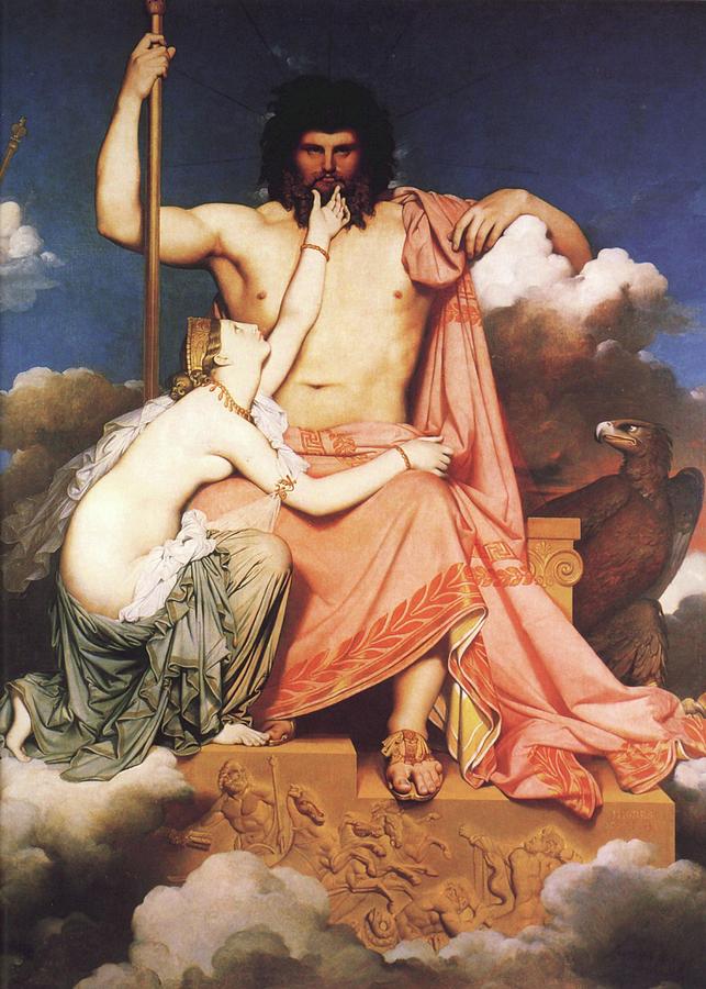 Zeus, no trono dos céus, ao lado de Hera, Têmis ou Tétis. França, por Bernard Terlay.